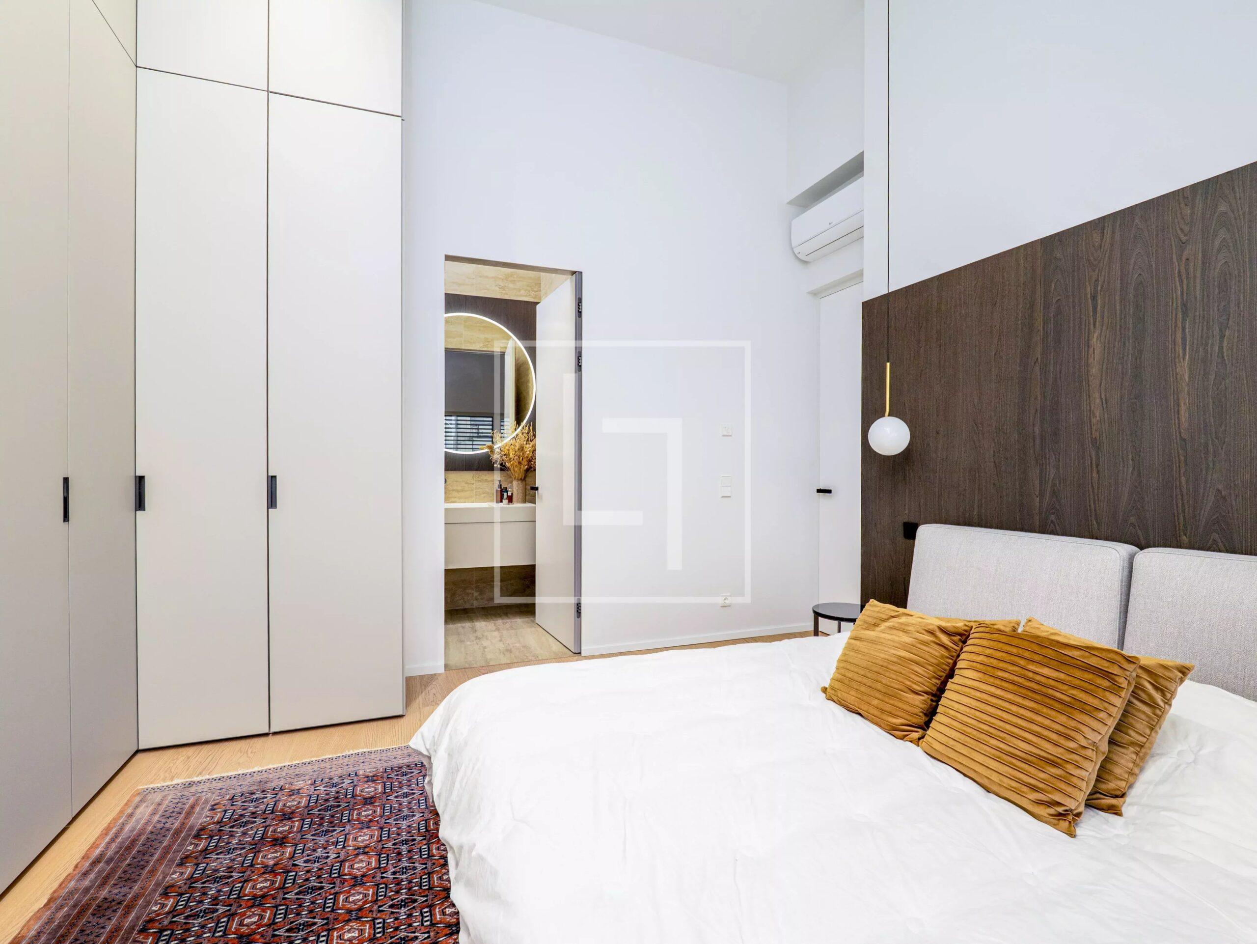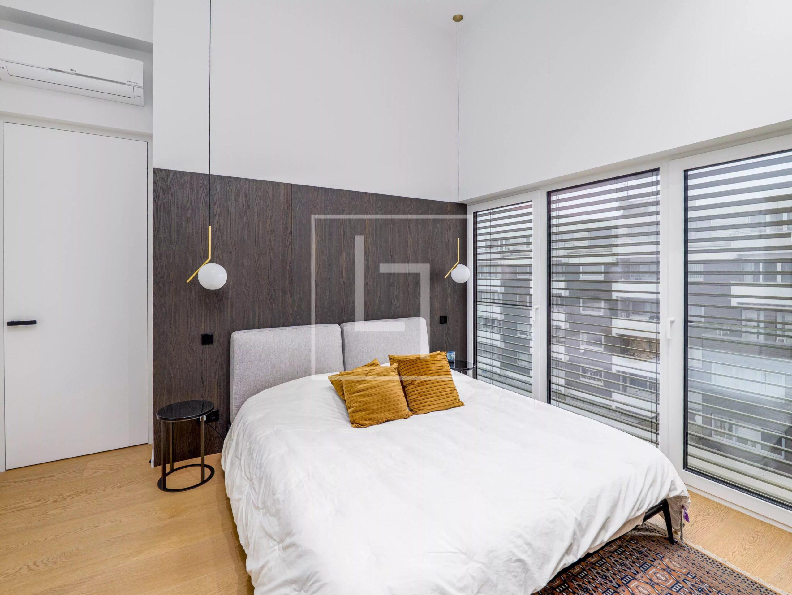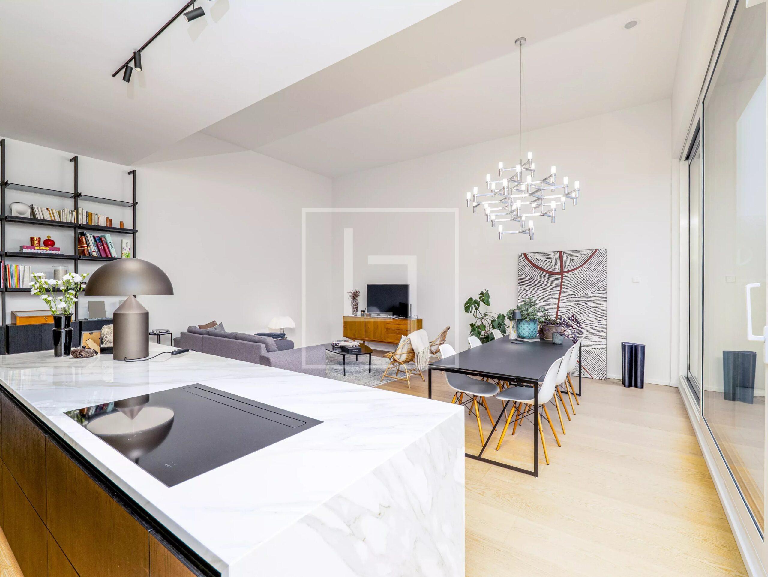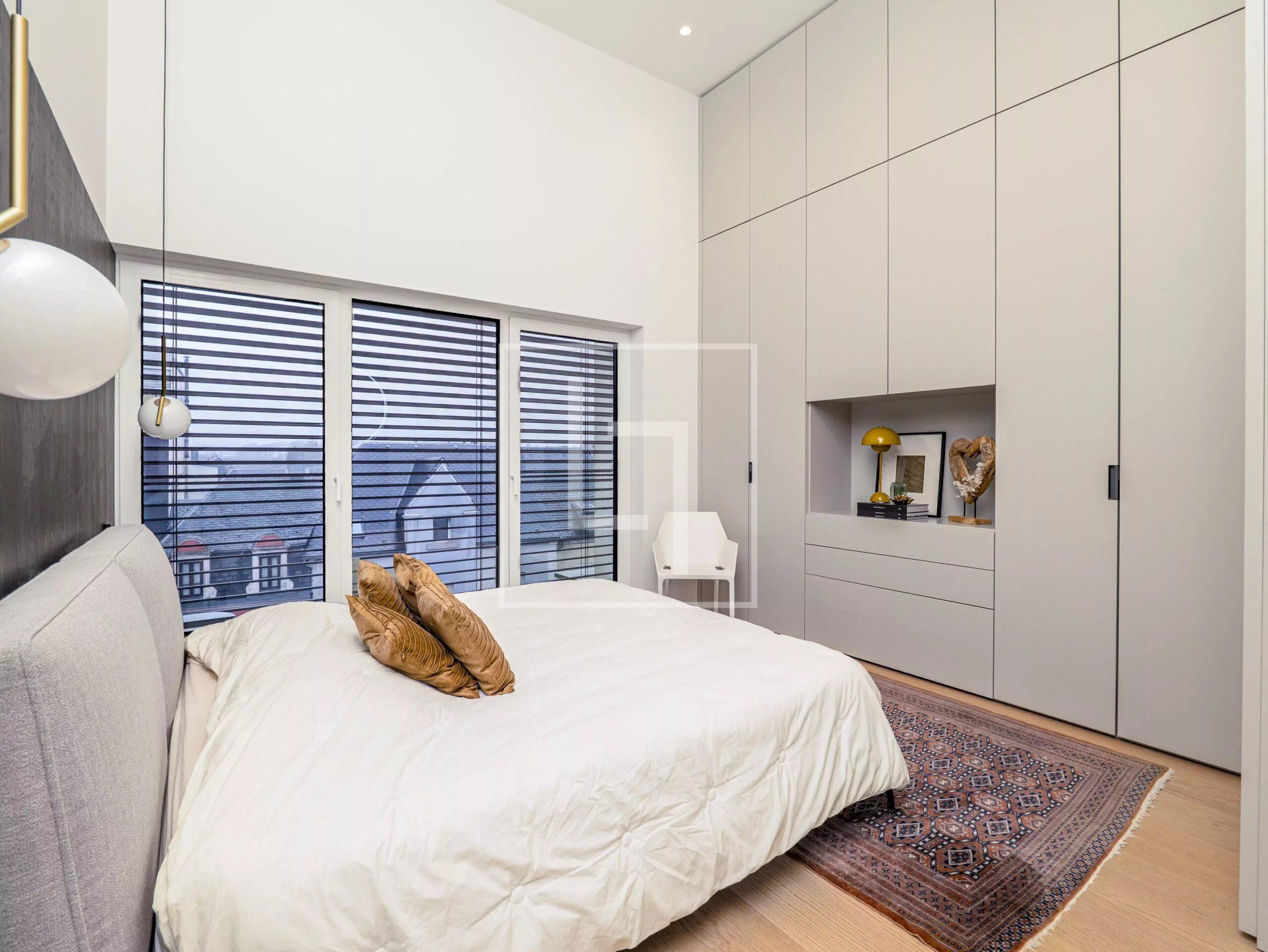 Nestled on the 4thᵉ and top floor with elevator, this rare property stands out for its exceptional volume and contemporary ambience. With ceiling heights ranging from 3.20 m to 4.07 m, it offers an incomparable sense of space and exceptional brightness with calm and privacy.