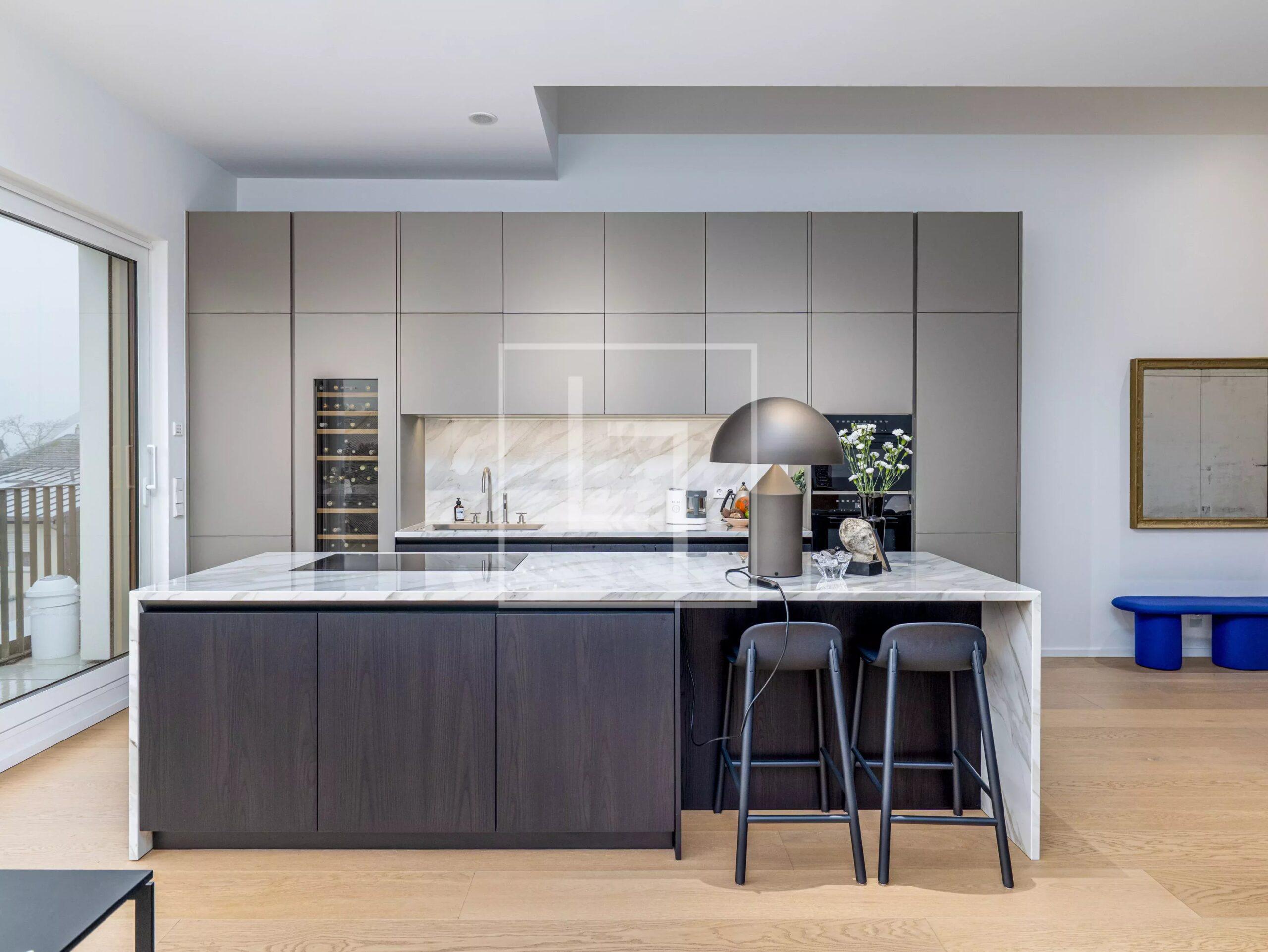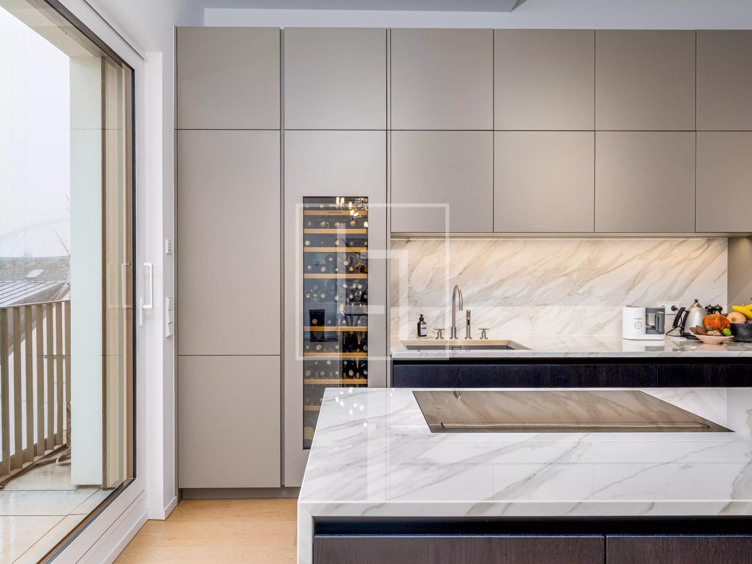 - a vast living room opening onto a top-of-the-range Poliform kitchen, including lined ceramic central island, wine cellar and Novy Panorama hob with retractable hood